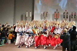 | | また後半には53名の選抜連が登場、各連の中心メンバーが参加するとあって、見応えも十分です。そして取りは総踊り。全員参加で会場いっぱいの阿波踊りの輪が広がりました。