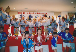 | | スマイルの「秋まつり」に招かれて、毎年訪問しています。フラメンコやフラダンスのあと、最後に阿波踊りを披露。