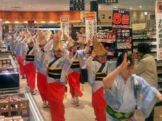 た特設会場で1日3回の踊り。店内を練り歩き、買い物客にも徳島県を