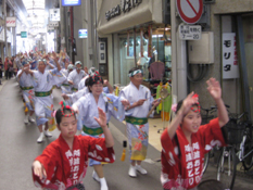 | | 今回は39名で参加。昨年に引き続いて2回目の出場です。12時30分より参加37チームが順次天理駅前と商店街の2ケ所でパレード。さらに本舞台と計4回の阿波踊りの披露。時間は短いがなかなか充実した演技で大拍手でした。特に5人の子供たちの大健闘が光りました。