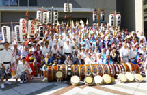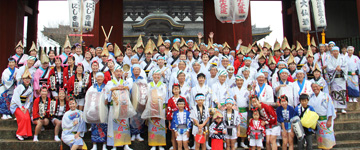 | | 200名を超える参加者全員の記念撮影、駅前広場で組み踊りを披露した後、イベント広場では4連勢ぞろいで総踊り。徳島をアピールした1日でした。