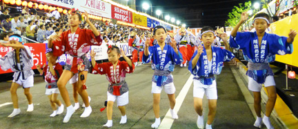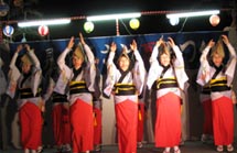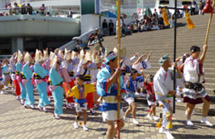 | | 長尾連長のおひざ元での阿波踊り。会場は鳥見小学校の校庭。中央に組まれたステージの上での男女組踊りを中心に熱演。最後はグラウンドで総踊り。暑かったが盛り上がりました。