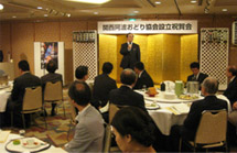 | | 大阪市内のホテルで設立総会があり、長尾連長ら4名が出席しました。会長には徳島県人会近畿連合会の中谷嘉明会長が就任、徳島県から飯泉嘉門知事が駆けつけて祝辞を述べ、最後は会場いっぱいの総踊りで締めました。