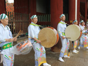 臨時に設けられた中門前のステージでは、大仏連の連員が会場の見学者に”復興支援募金”への協力を呼びかけました。