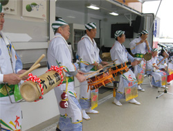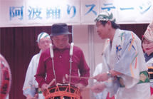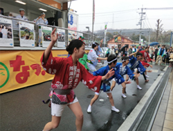 | | 寒波が日本列島をおそった2月5日。毎年恒例の徳島県の物産展が、大和郡山市のショッピングセンター「アピタ郡山店」で開催され、大仏連は応援出演。1時と3時の2回講演で、駐車場広場で熱演。寒さを吹き飛ばす阿波踊りに「元気いっぱいもろたわ」と買い物客のみなさん。店内のパフォーマンスも上出来でした。