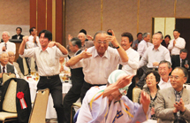 徳島県から齋藤秀生副知事を始め多くの来賓も参加、総会終了後の懇親会の最後を彩る「阿波踊り」の出演で、会場は大盛り上がり。県人会の会員も上着を脱いで一緒に踊りの輪に。さすが徳島のDNAです。