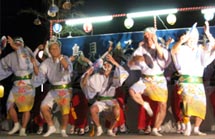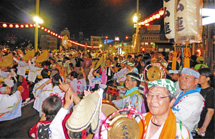 | | もうすっかりとおなじみになった「王寺町舟戸1丁目夏祭り」。今年は例年以上の大盛り上がり。鳴り物や踊りの教室が開かれ、住民達も“わか連”気分になって…暑い夜の熱い交流でした。