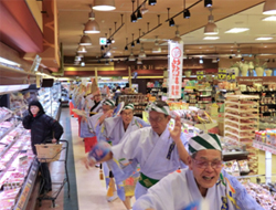 この日は3回講演で、熱心なお客様が声援を送ってくれました。店内を練り歩く踊りは買い物客も足を止めて拍手喝采。