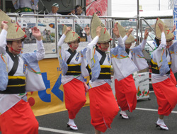 | | 昨年、東日本大震災で中止になった橿原市の「神武祭」が開催され、締めくくりは県立橿原体育館から橿原神宮駅前までの約1キロのパレード。大阪の「にしき連」さんとの合同チームで阿波踊りを披露しました。