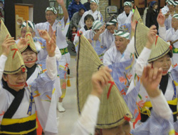 | | 13:30〜14:30まで、元気なお年寄りと阿波踊りの交流は大変盛り上がり、皆さん大喜びでした。