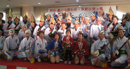 議員の恒例の「新春の集い」。連員40名が参加して600名の出席者の前で披露、会場からの飛び入りもあり、最後はステージの上で記念撮影。設立10周年の年のスタートを切りました。