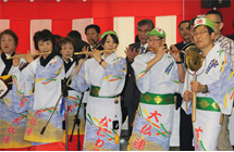 | | 近鉄駅前広場ではセレモニー会場では、オープニングを務め、大勢の観光客からも拍手を受けた。