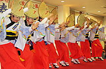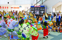 | | そのため、屋外での踊りは無理となり、スーパーメーケット「サンタウン高の原」内の広場での開催。思う存分観客と一体になったパフォーマンスに大きな拍手が送られました。