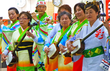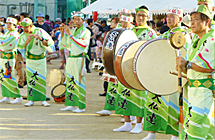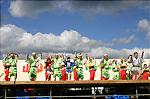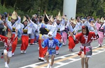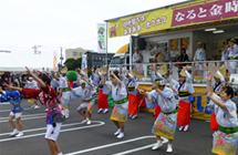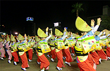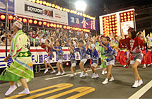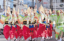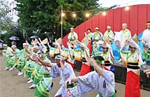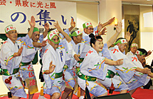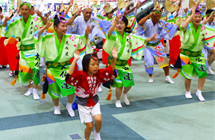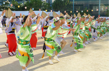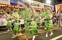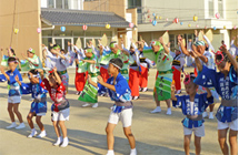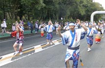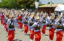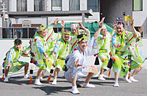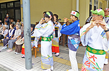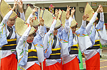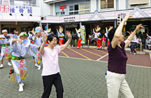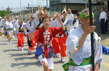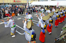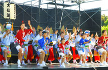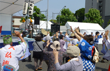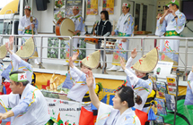 | | また、午後からは特設ステージで各連がパフォーマンスを披露、最後は会場全体を巻き込んだ総踊りでフィニッシュ。 (写真クリックで拡大)
