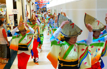 顔見せから組踊り、ちびっ子踊りまで約20分にわたって披露、最後は会場内で参加者とともに総踊り。