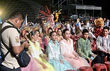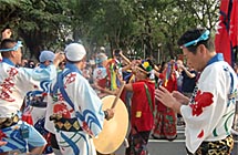 | | 午前11時には平城宮跡資料館前をスタート、大極殿前の広場までパレード。布作面、琉球太鼓、韓国舞踊とともに沿道から大きな拍手を受けました。