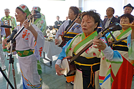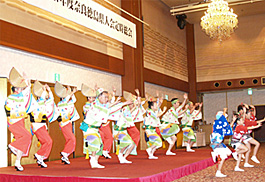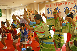 | | 新谷 一県議会議員の「新春の集い」に招かれて出演。総踊り、組踊りなど日頃の成果を披露。大いに盛り上がりました。
