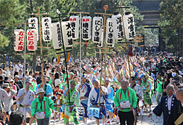 | | 会場では、奈良徳島県人会のメンバーが募金箱をもってまわり、多くの参拝者が寄付をして下さいました。 |