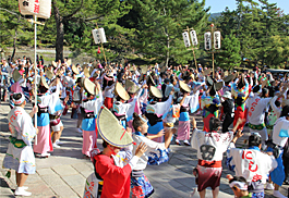 | | 奈良徳島県人会と阿波踊り同好会「大仏連」の主催による奉納阿波踊りが秋晴れのもと、関西阿波おどり協会に加盟する阿波踊り仲間の応援を得て盛大に開催されました。