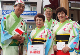 | | また、今年からスタートした「奈良県南部災害義援金」の周年活動も同時にスタート。踊りの披露のかたわら募金箱をもったメンバーが会場を一周すると、たくさんの義援金が… 大感謝です。