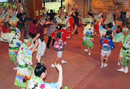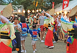 | | 舞台踊りは約30分。最後は住民も一緒になって広場で総踊り。楽しいイベントとなりました。