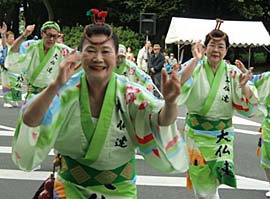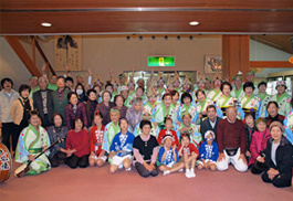 | | この日は38名が参加して組み踊りから最後の総踊りまで、徳島県人ばかりなので会場はぞめきのリズムに合わせてのりのりでした。