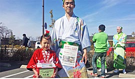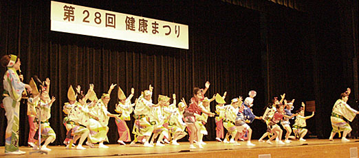 | | 大和高田市内の医療機関の主催で毎年開催されている「健康まつり」に午後2時前から出演。今年は約200名が詰めかけたステージ踊りではじまり、最後は露天のテントが並ぶ広場でパレードと総踊り。