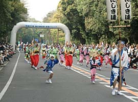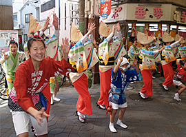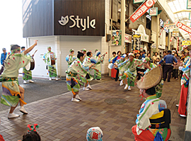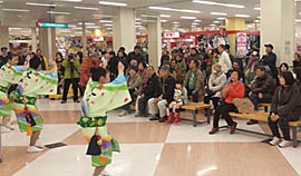 | | 平城ニュータウンの住民同士の交流を図るために毎年実施され、大仏連も毎年参加しています。広場の入り口からパレードをして、ショッピングセンターの中まで練り踊り。買い物客もびっくり。