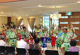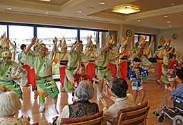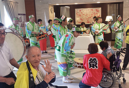 | | 毎年6月の父の日を前に今年で3年連続の訪問です。入居者や職員の方々も阿波踊りを楽しみに待ってくれています。