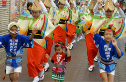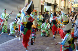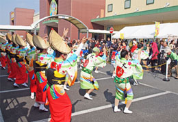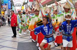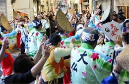 | 地区の住民を対象とした事前練習を2回実施した上で参加した「ひがしなり街道玉手箱」は晴天のもとで開催され、今里新町通商店街など2カ所でパレードと構成踊りを披露した。事前練習に参加した地区の住民らも参加し、商店街ぎっしり詰めかけた観客も飛び入りで踊りの輪に。