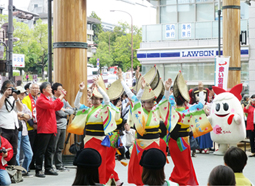 | | 長〜い商店街ではパレード。商店街の人や買い物客からも拍手。2カ所では構成踊りも披露し、もうすっかりと阿波おどりが溶け込んだイベントになりました。