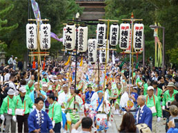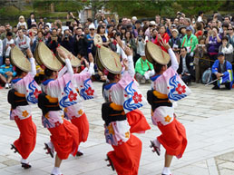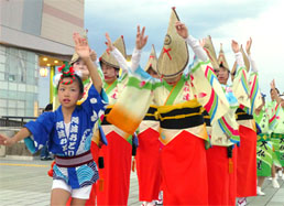 | | 午後12時30分に南大門をスタートして、1時から中門前では参加した連の代表が、個性あふれる阿波踊りを披露します。