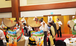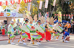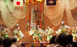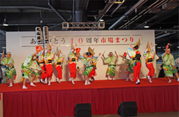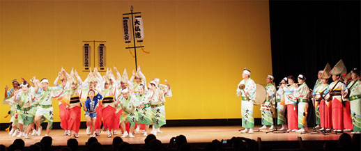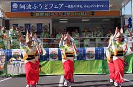 | | 午前11時からは徳島県内の市町村が出展する物産展がオープン。多くの買い物客で賑わいました。午後からはいよいよ各阿波踊り連のステージが始まり、客席は大入り満員。大仏連はラスト3の出番で、楽しさ満喫の1日でした。