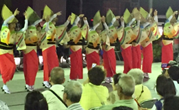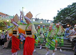 | | 午後7時に近鉄高の原駅前をスタートしてパレード開始。場内を一周したあとステージで20分の組踊りを披露、最後は総踊りで締めくくりました。今年も沢山の皆さんに踊りの輪に入って頂きました。