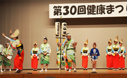 | | 大和高田市内の医療機関の主催で毎年開催されている「健康まつり」に招かれて今年で5年連続の出演。奈良県産業会館大ホールのステージで、新しい構成おどりを披露、最後は会場のお客様も一緒に総踊り。その後、広場でパレードをして締めくくりました。
