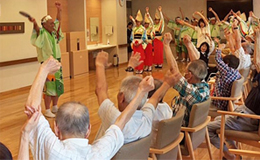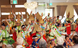 | | 近鉄あやめいけ駅の近くの高齢者居住施設「ベルパージュ奈良あやめ池」に訪問。入居者の皆さんと、阿波踊りを通じて楽しい交流のひとときを持ちました。