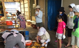| | 地元の漁師のお母さんが、料理してくれた新鮮な「海の幸」に大満足。