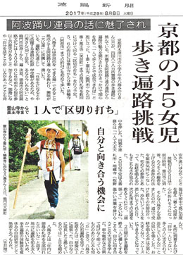 | | 大仏連のこども踊りのエース・八島みのりちゃんが歩いて四国遍路に挑戦!記事が掲載されました。(クリックで記事拡大)
