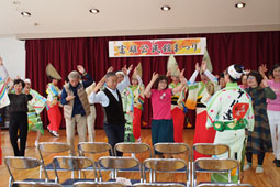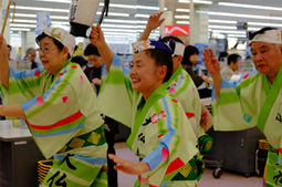 | | 最後は、会場いっぱいに総踊りの輪が広がり、みんな一体となって踊りを楽しみました。