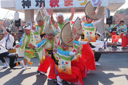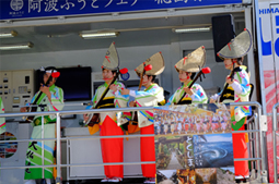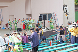 | | 阿波踊りは11時50分スタート。組踊りを披露したあと阿波踊り教室に。そして最後はみんなで総踊り。会場が一つになって盛り上がりました。