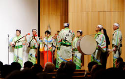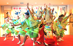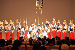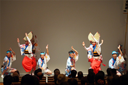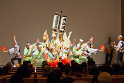 | | 午後2時からの一般講演に続き、フィナーレは南大阪連との合同出演による阿波踊り。南大阪連と大仏連の組み踊りがステージで披露されたあと、最後は50人を越える鳴り物や踊り子達が観客席に躍り込む総踊りを披露、会場全体が徳島一色となる感動の締め括りとなりました。