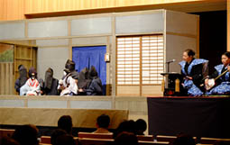 | | 世界遺産の東大寺で、奈良徳島県人会が初めて取り組んだ「阿波人形所瑠璃なら公演」は、300名の客席が満席になる盛況ぶり。徳島県立阿波十郎兵衛屋敷から15名のスタッフが徳島から駆けつけ、国の無形民俗文化財に指定されている人形浄瑠璃「傾城阿波の鳴門」の一幕を実演。