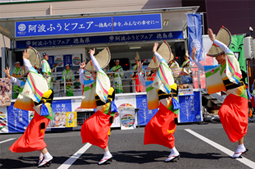 沖縄、福岡、鹿児島、熊本、高知、徳島、和歌山、山口、島根、兵庫それに徳島の各県から物産展などが出展され大賑わい。