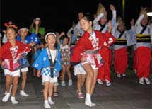 | | 地元自治会の熱心な取り組みで、前もって「阿波踊り教室」が開催されるほど。この日は、高の原駅前広場から「燈花会」仕立てのローソクストリートを用意してくれました。広場では、組踊りのあとは多くの観客も一緒に「踊らにゃ、そんそん」。大きな踊りの輪ができました。
