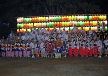 | 7月 | 19日(日) | 磯城郡王寺町の「王寺舟戸自治会」の夏祭り。空模様があやしくなり、予定より30分早めてオープン。近くの住民のかた達もみんなで入って公園で踊りました。