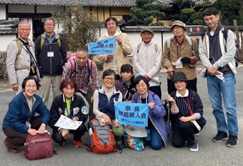奈良は由緒ある歴史宝庫。 一度は下見をして当日参加者のための資料づくりにも勤しむ。 徳島県関西本部や他府県の県人会からの参加者もあり、毎回多くの参加者が。